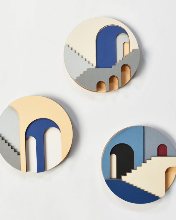 “Je suis très influencée par mon métier d’architecte. J’aime mettre en abyme les éléments de notre quotidien liés à l’architecture, en tirer des formes géométriques et en faire une œuvre. Chacune de mes œuvres, que ce soit une huile ou une sculpture, naît systématiquement d’un dessin à la main. Et c’est l’aquarelle, découverte à mes 6 ans, qui m’a fait découvrir la couleur et ses nuances. Au fil du temps j’ai appris d’autres techniques. Aujourd’hui je peins à l’huile, je fais aussi des œuvres liées aux évolutions technologiques : des sculptures au laser. J’aime expérimenter les techniques et explorer des univers imaginaires. »