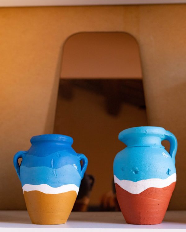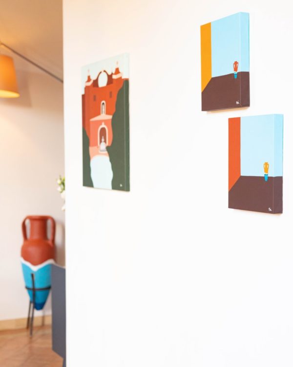 Cap sur l’été imminent ! Sara exposera à Rome début juin chez LdG Art & Patrimoine une série unique d’œuvres sur toiles en différents formats, des paysages architecturaux aux tons estivaux directement inspirés du Bel Paese, ainsi que des céramiques méditerranéennes peintes. Une peinture empreinte d’un humour du détail à travers quelques clins d’œil à la grande Bellezza. Dans le creux de ses vagues pastels, Sara nous invite à un instant de pause. Plongez dans l’univers vibrant et onirique de Moi. aux airs de A Bigger Splash de David Hockney en rêvant à un été italien.