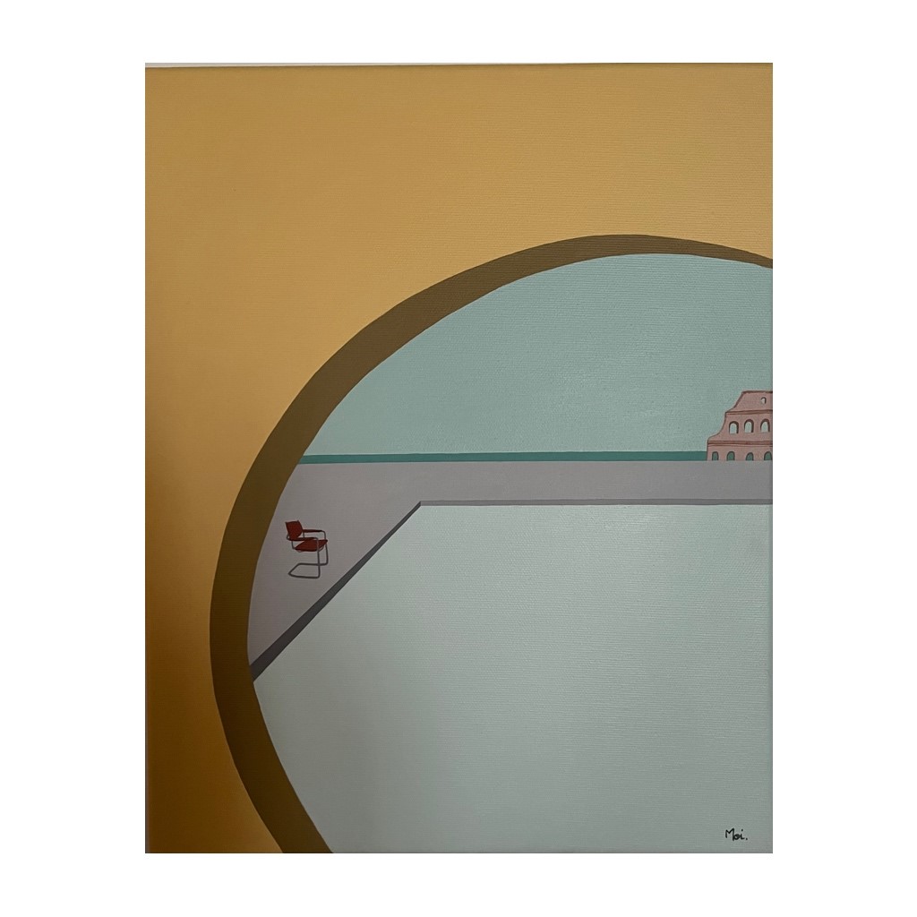 In partenza per l’estate! Sara esporrà a Roma presso LdG Art & Patrimoine all’inizio di giugno una serie unica di opere su tela di vario formato, paesaggi architettonici dai toni estivi direttamente ispirati al Bel Paese, oltre a ceramiche mediterranee dipinte. Una pittura intrisa di umorismo e di dettagli, con qualche cenno alla Grande Bellezza. Nell’incavo delle sue onde pastello, Sara ci invita a fermarci per un momento. Immergetevi nel mondo vibrante e onirico di Moi, che ricorda A Bigger Splash di David Hockney, e sognate un’estate italiana.
