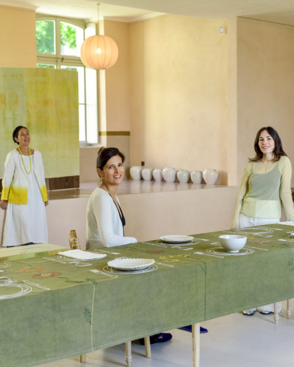 Per questo invito all’ex conceria reale di Lectoure, Sarah Espeute mette al primo posto il colore, in particolare il verde!