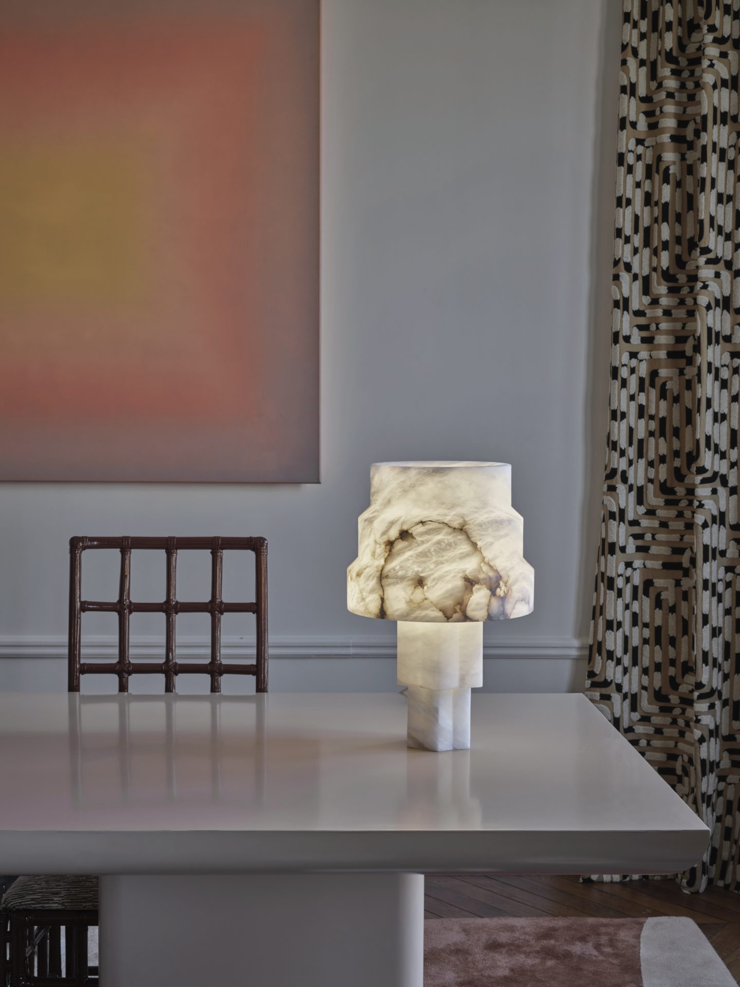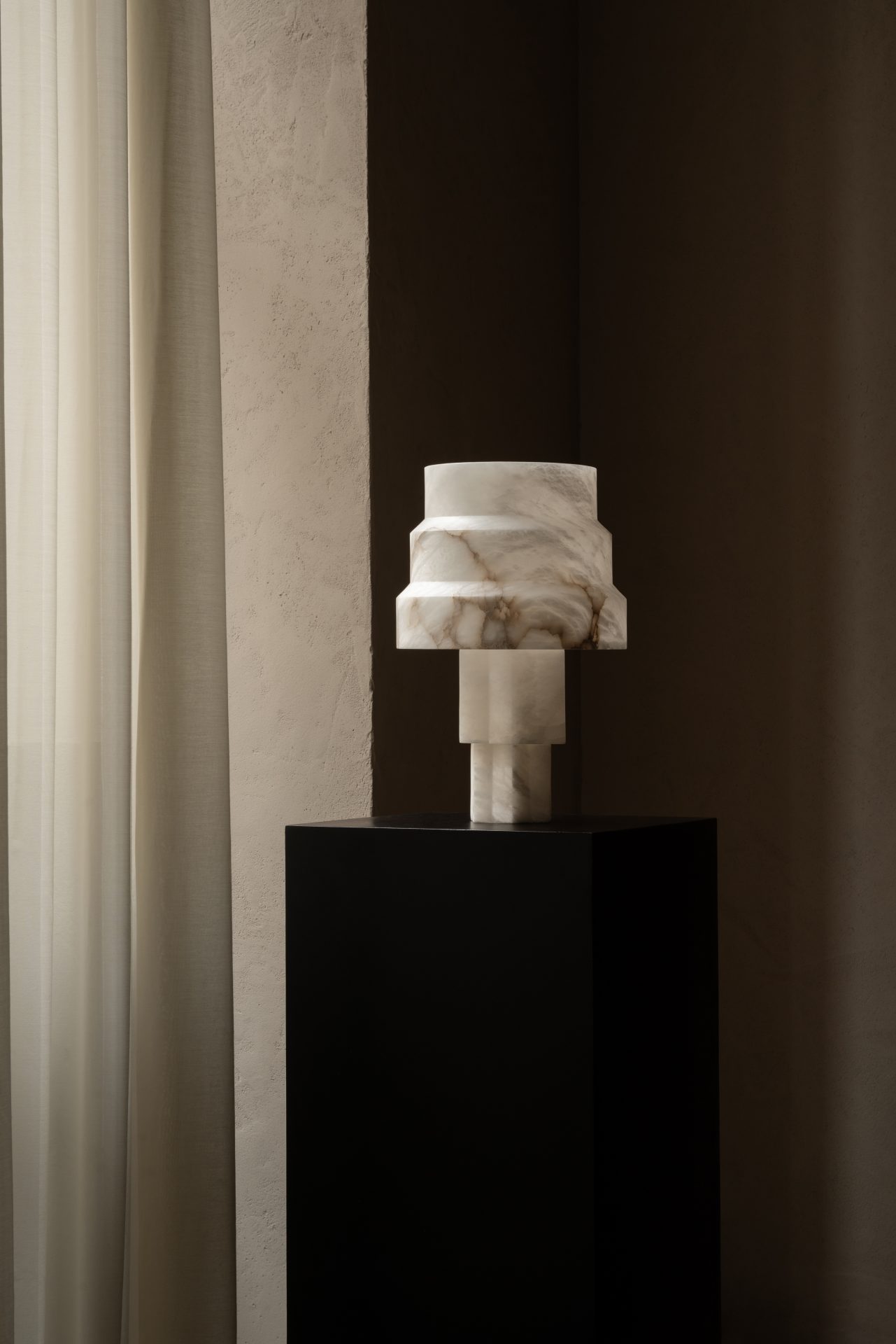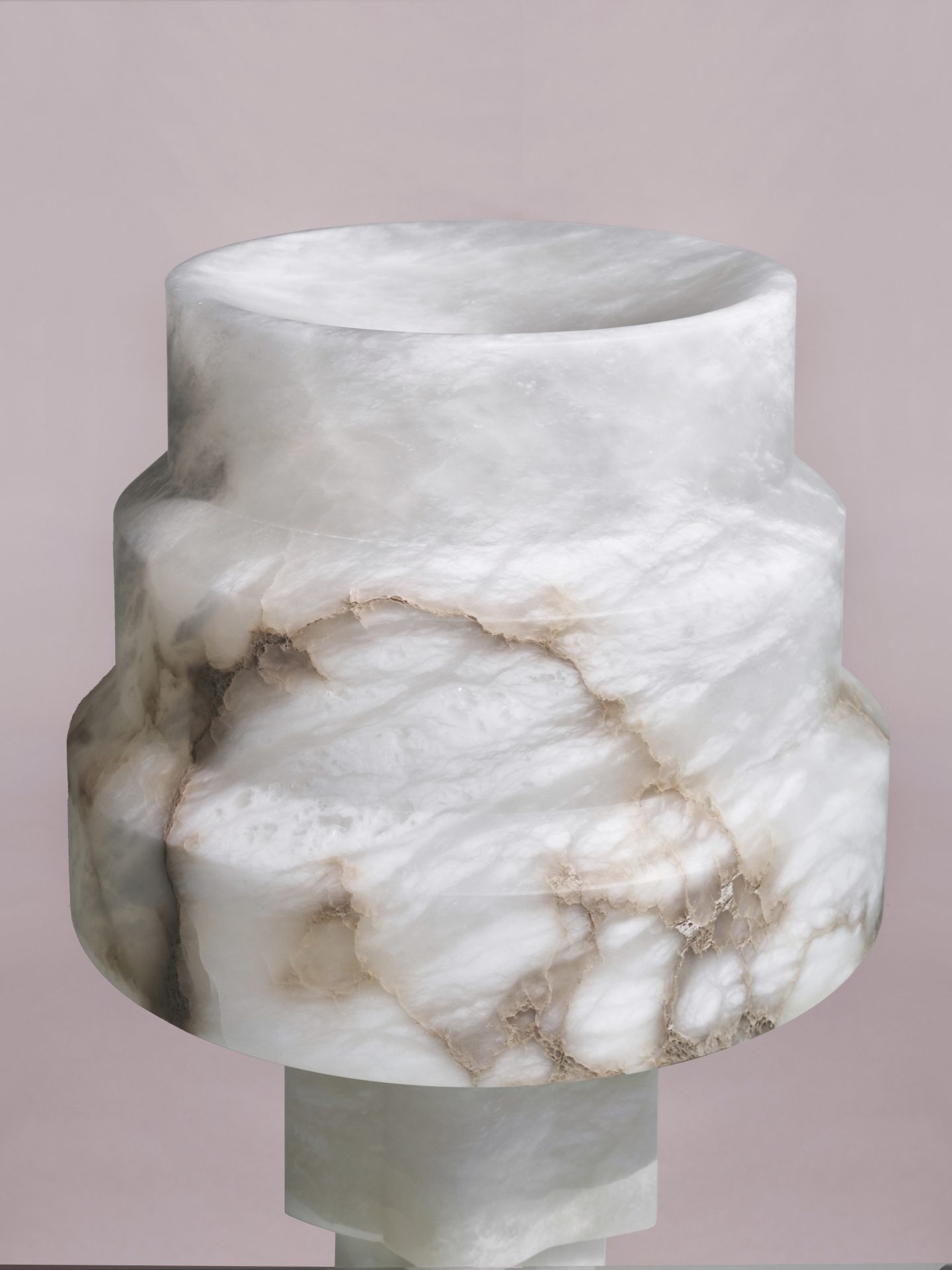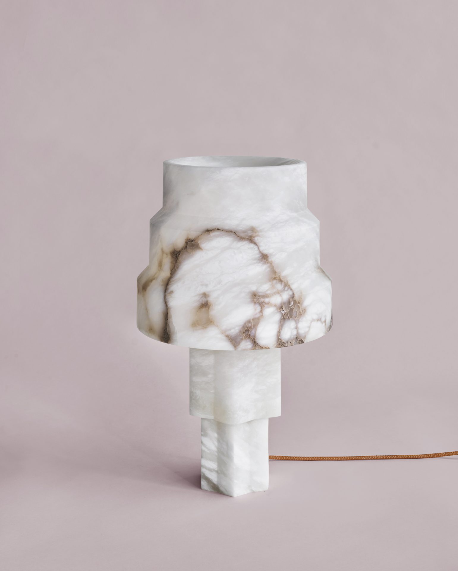 Dans un vocabulaire toujours très géométrique, cette famille de lampes révèle la matière translucide et organique de l’albâtre.