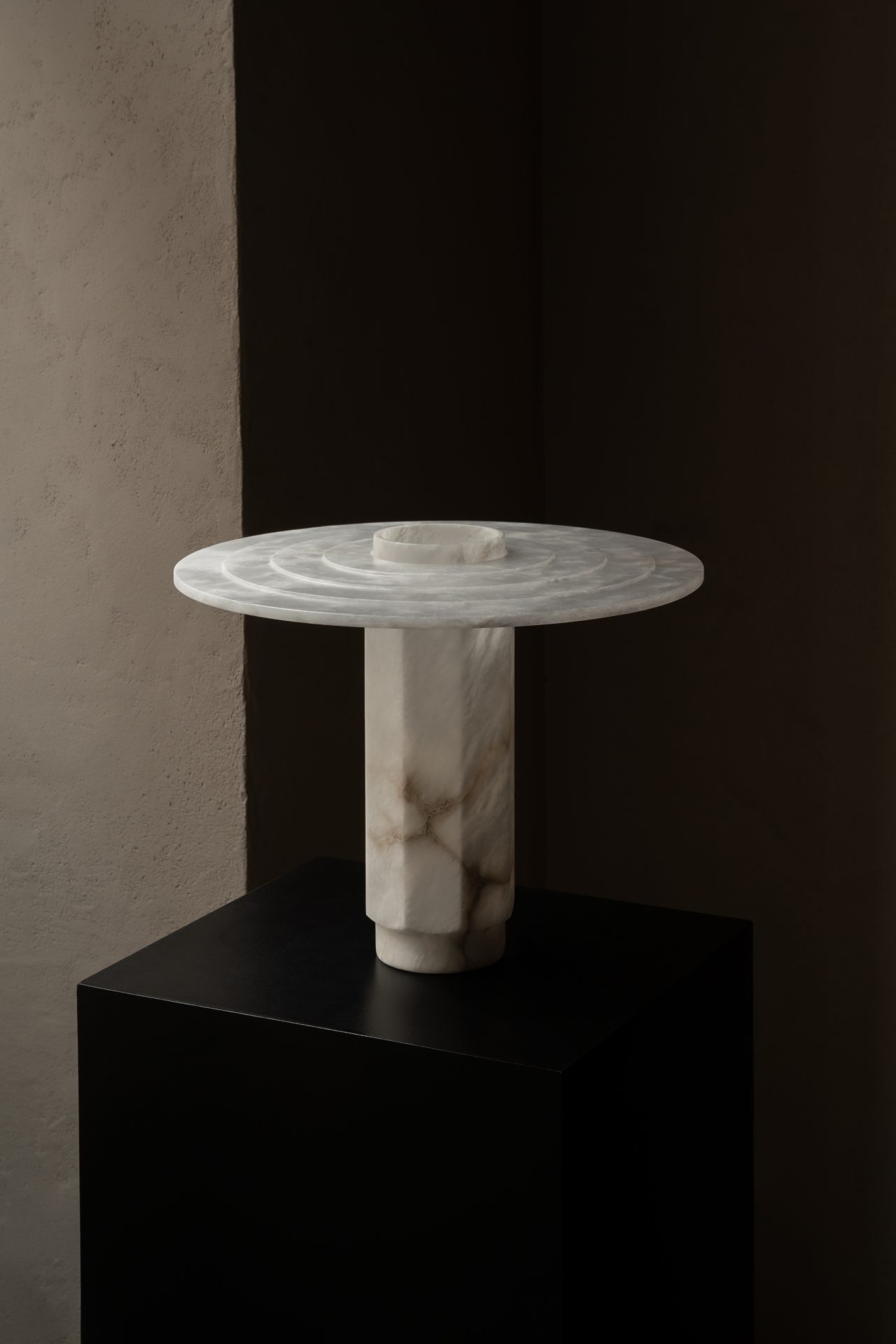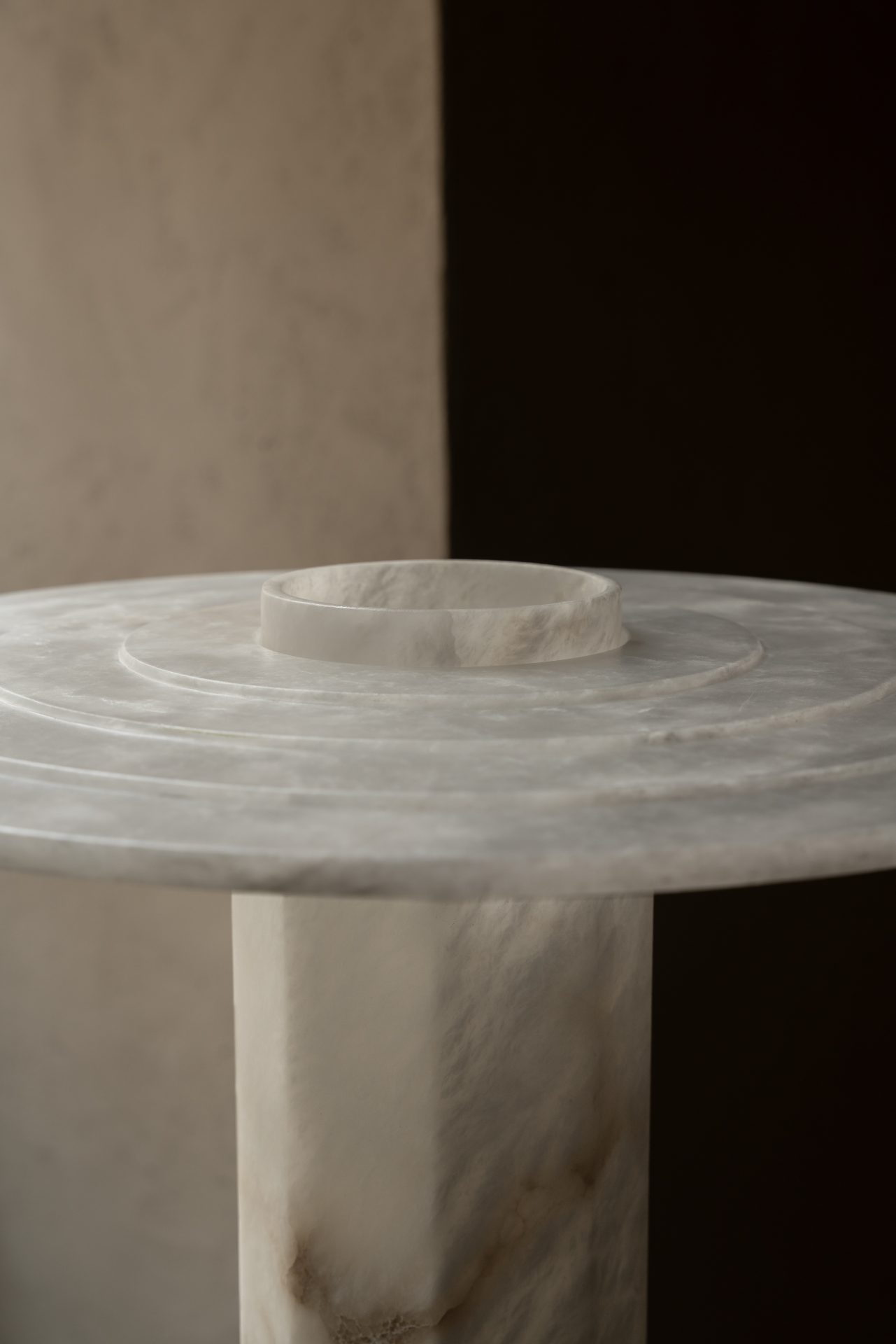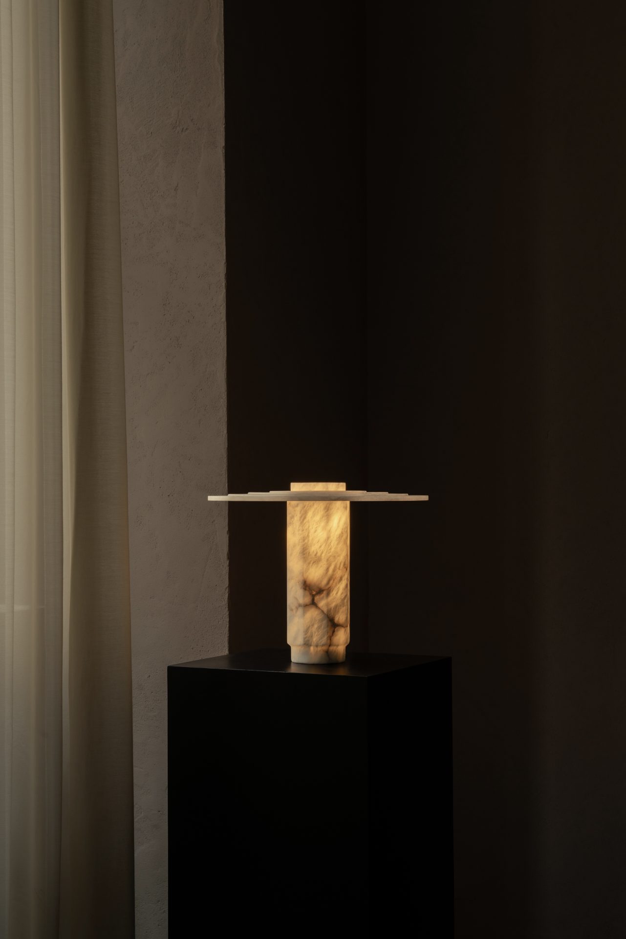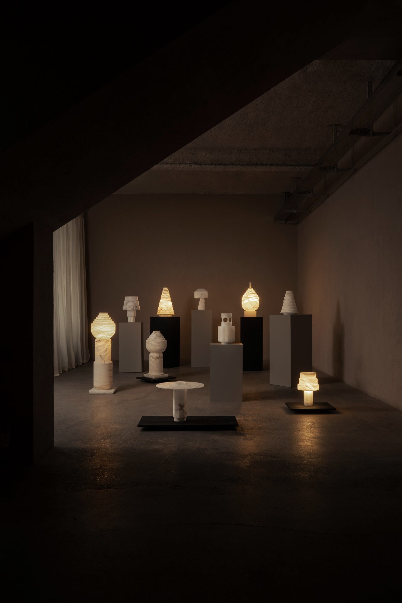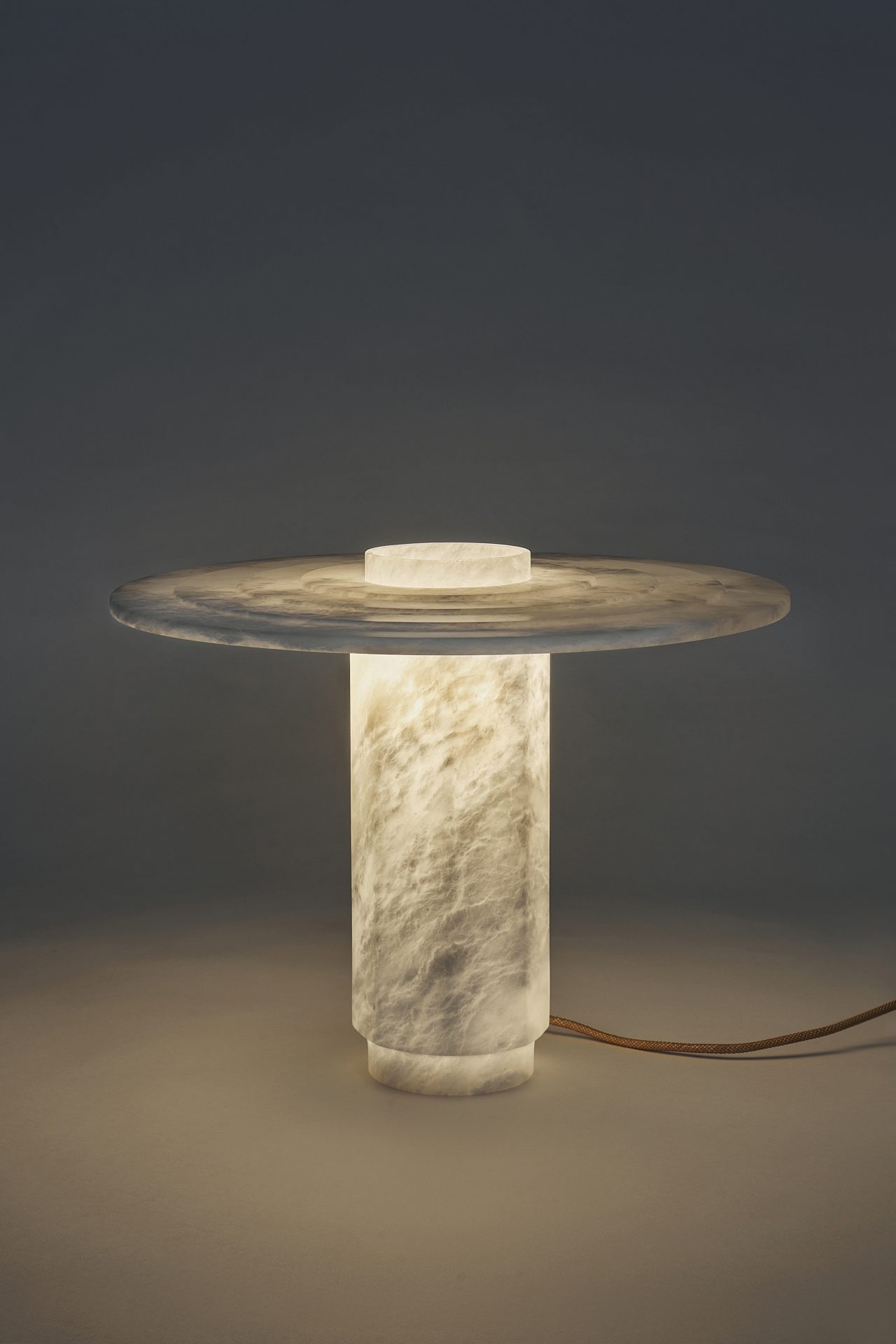 Dans un vocabulaire toujours très géométrique, cette famille de lampes révèle la matière translucide et organique de l’albâtre.